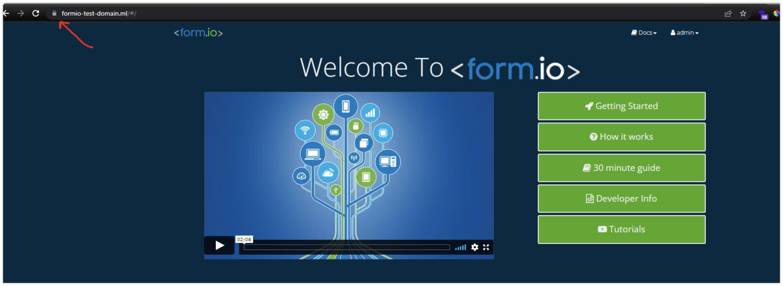 After a few minutes, the environment will be available and ready for a new Form.io Project.