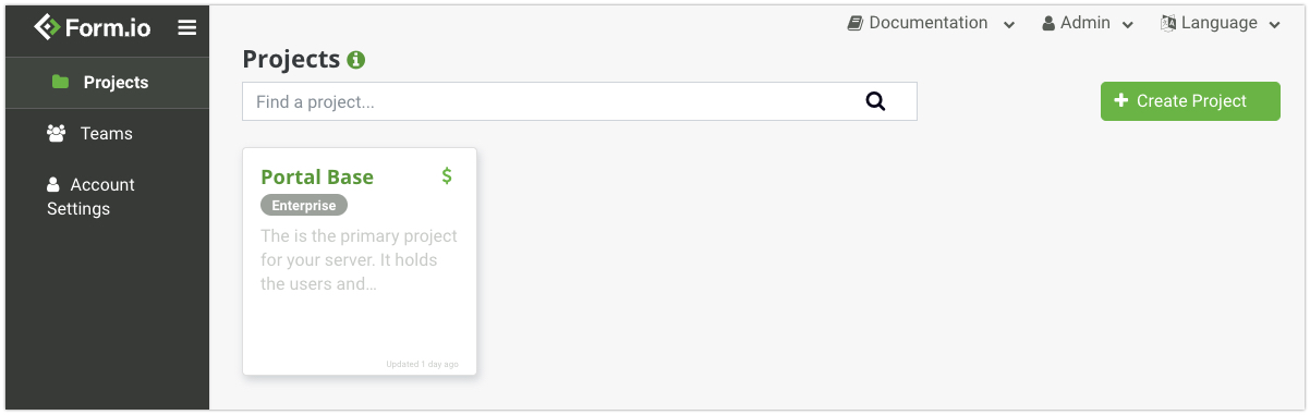 1. As an environment Admin, navigate to the [**Portal Base Project** ](https://help.form.io/deployments/portal-base-project)