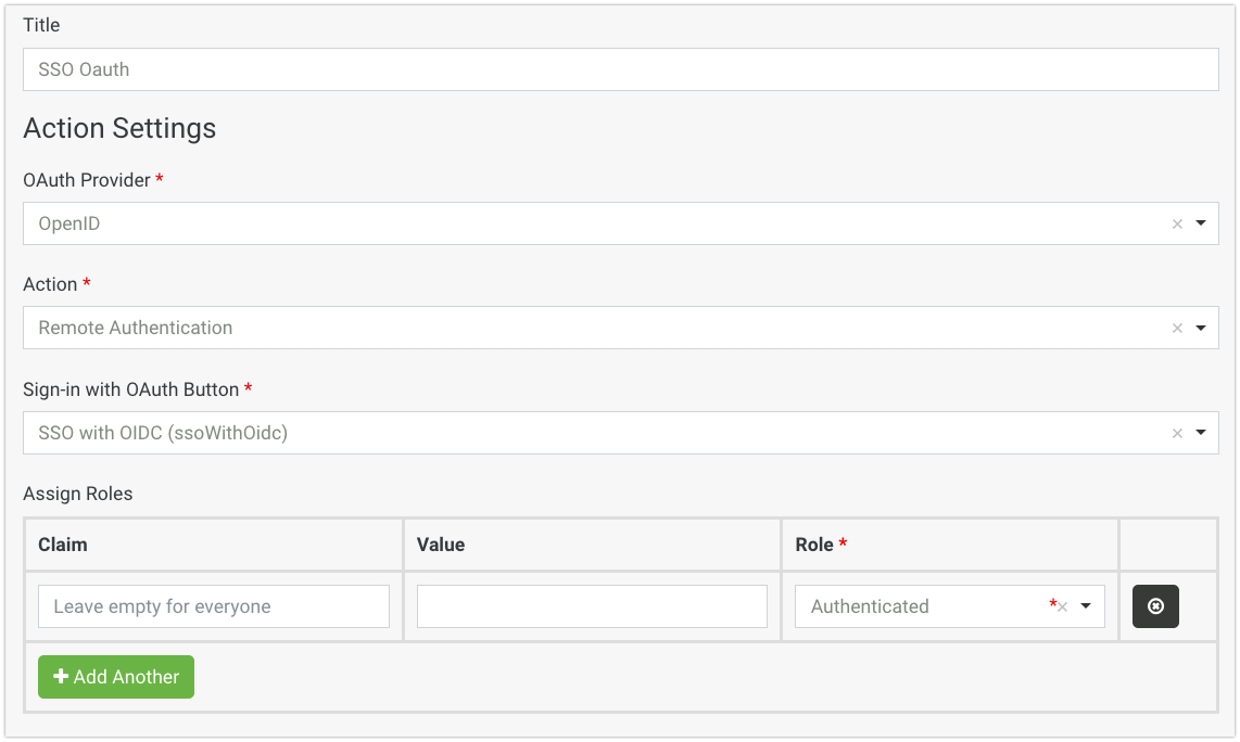 1. Set the **Action** to **OAuth** and the **Provider** to **OIDC**
