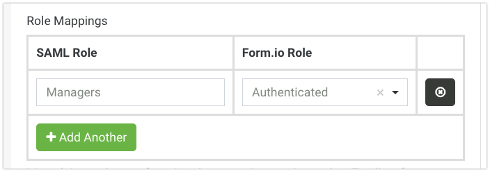3. Ensure the correct SAML Roles are properly mapped to the correct Form.io Role