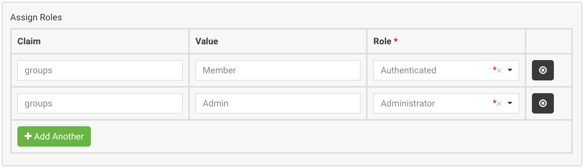 * If you are not delegating OIDC Roles, leave the **Claim** and **Value** setting blank and select a Form.io role you want to assign the user. The following configuration will delegate every OIDC user logging in to carry the Form.io Authenticated role.