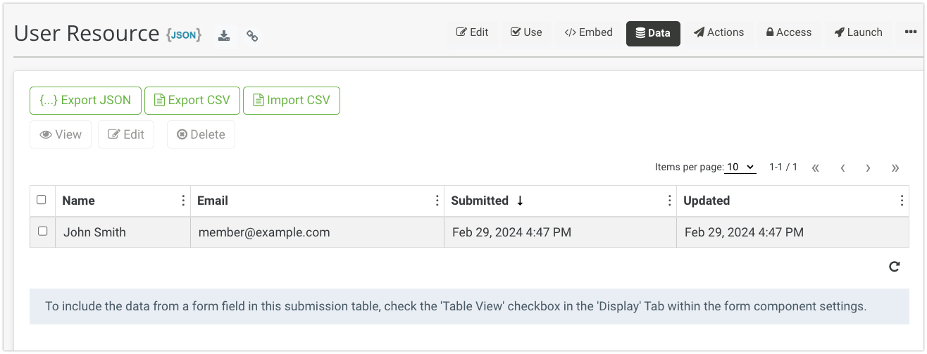 3. Navigate to the **User** Resource **Data** tab within the Project and ensure a User record was generated based on OIDC User registration.