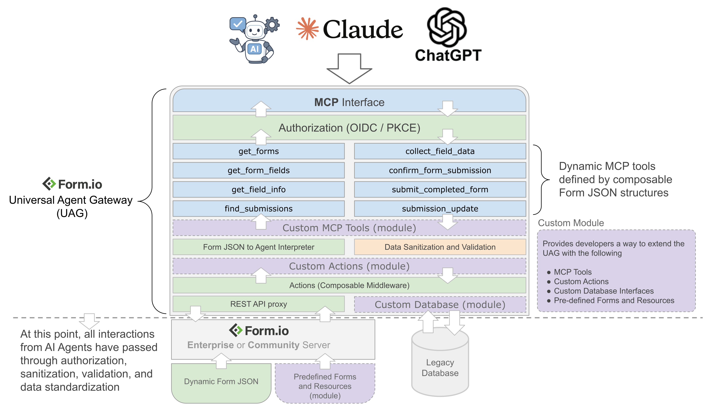 The **Universal Agent Gateway** (UAG) introduces the power of [Form.io](https://form.io/) forms to AI agents.
