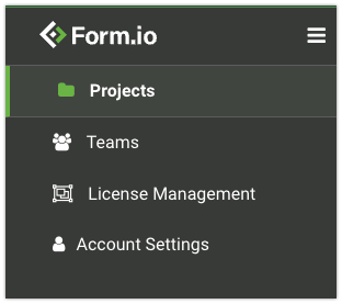 The header section allows you to return to the main Portal page by clicking the Form.io logo. The Hamburger icon will collapse the navigation tab, providing additional screen space.